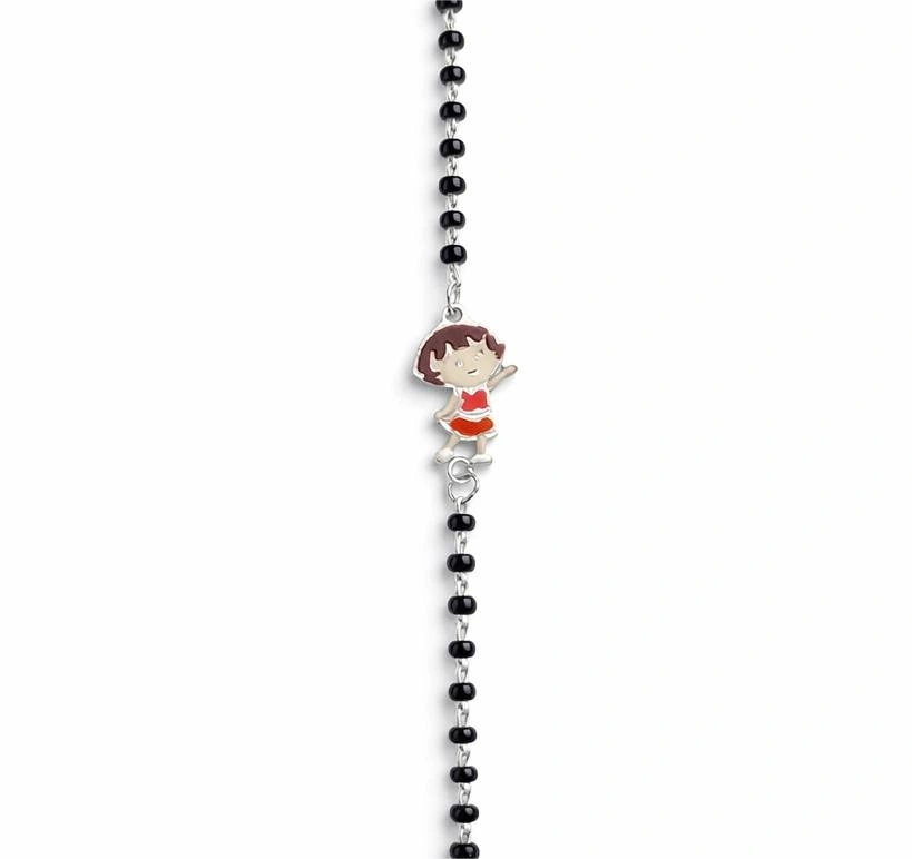925 Sterling Silver Black Bead Nazariya Bracelet with Cute Girl Charm for Kids