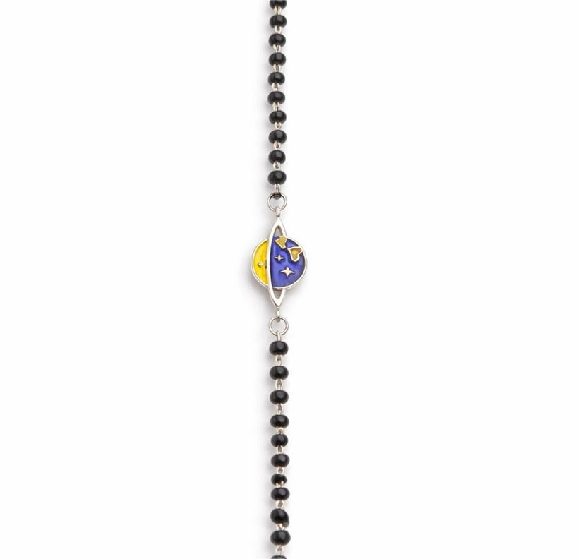 925 Sterling Silver Black Bead Nazariya Bracelet with Moon & Star Charm for Kids