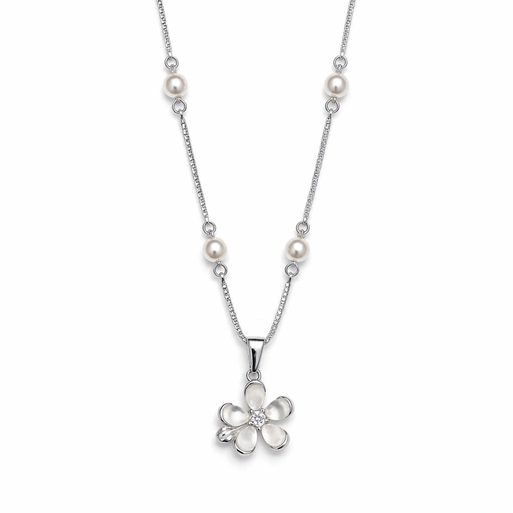 925 Sterling Silver Pearl Flower Pendant Necklace for Women