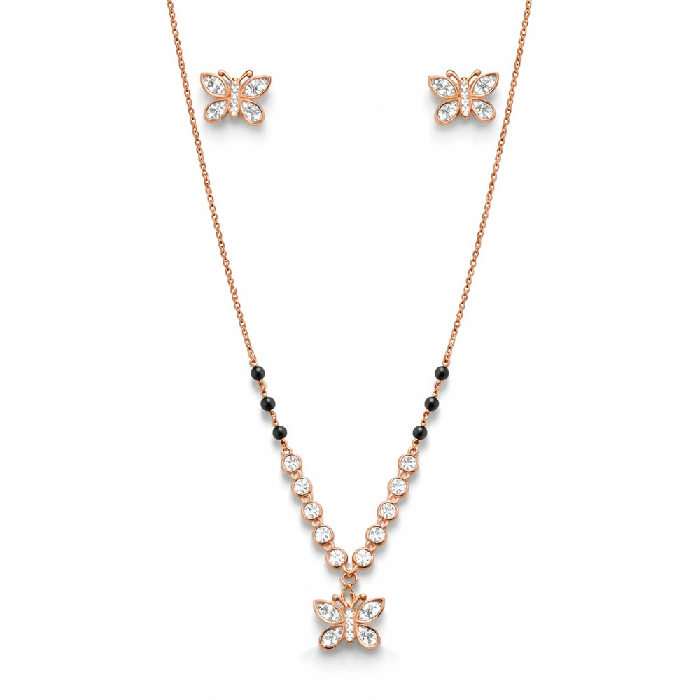 925 Sterling Silver Rose Gold Butterfly Mangalsutra Necklace Set with CZ Stones & Earrings