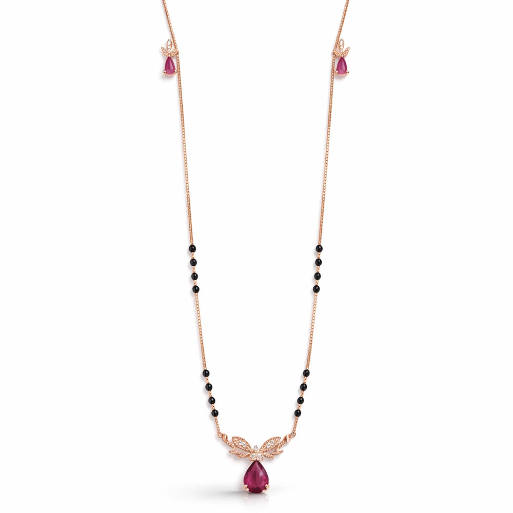 925 Sterling Silver Rose Gold Butterfly Ruby Drop Mangalsutra Set